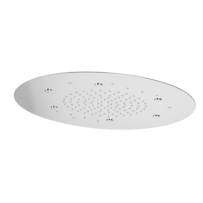 Soffione a soffitto con: pioggia, nebulizzazione, cascata, cromoterapia con 8 luci led. Con tastiera di comando.